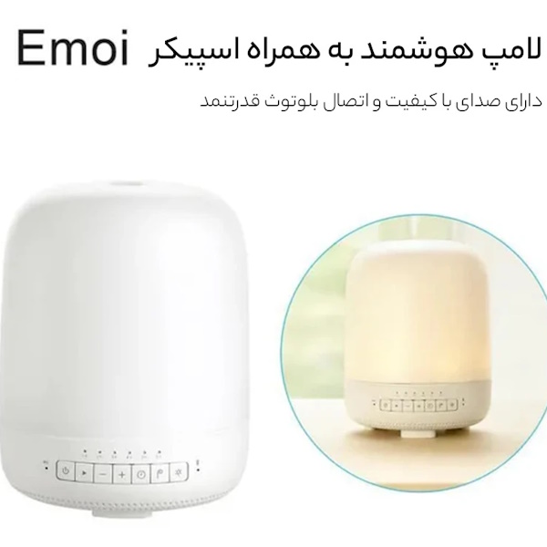 اسپیکر بلوتوثی و لامپ هوشمند ایمویی مدل H0027 هم به عنوان یک اسپیکر بلوتوثی و هم یک لامپ هوشمند مورد استفاده قرار میگیرد. با این لامپ میتوانید موسیقی موردعلاقهی خود را از طریق بلوتوث پخش کنید و از آن بهعنوان یک اسپیکر نیز بهره بگیرید. این محصول را میتوانید با استفاده از نرم افزار emoi smart مدیریت کنید. این اسپیکر و لامپ هوشمند نیاز به انرژی 100 تا 240 ولت دارد و توان مصرفی آن 0.8 وات است. این محصول دارای قابلیت تغییر رنگ چراغ، تنظیم نور و صدا و کنترل بخور است. شاید یکی از قابلیت های ویژه این محصول دارا بودن بخور است که تمامی این ویژگی ها را میتوانید با استفاده از نرم افزار نام برده شده مدیریت کنید. مخزن بخور سرد این محصول 200 میلی لیتر است که میتوانید در حالی که در حال گوش دادن به موسیقی هستید از بخور سرد آن هم لذت ببرید. نور ملایم با قابلیت تغییر رنگ، موسیقی مورد علاقه و بخور سرد هر کاربری را جذب H0027 میکند. از دیگر ویژگیهایی که میتوان به آن اشاره کردن قابلیت اضافه کردن اسانس به آب است که باعث میشود بتوانید فضای مطبوع با رایحهی دلخواهتان را در اتاق یا محل کارتان فراهم کنید.